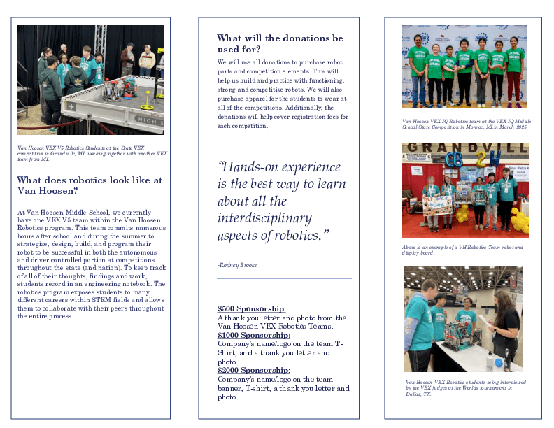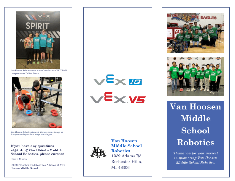 *To learn more about the Van Hoosen VEX Robotics Club, please click on this brochure