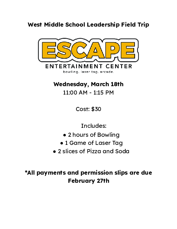 West Field Trip to Troy Escape – March 18, 2026